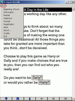 1. If you have not already found the registration page, then open your inebook and press the down arrow to move past the title page . Now choose Registration from the Book menu, as shown below: